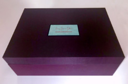 Custom-built to hold the optimum number of sheets, cards, and envelopes, ours are built by highly skilled, archival, book arts-artists. Choose the iconic Nancy Sharon Collins, Stationery packaging colors as shown. Or personalize the outer and inner, silk, book cloth to suit your taste and match your stationery.